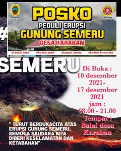 Ketua Karang Taruna Ngudi Rahayu Mas Rukin menyampaikan, bahwa bagi masyarakat Desa Karaban dan sekitarnya yang ingin memberikan donasi untuk korban erupsi Gunung Semeru dapat datang langsung ke posko tanggap darurat di Kantor Kepala Desa Karaban. Selain itu juga dapat menghubungi Anggota Karang Taruna Ngudi Rahayu dan donasi akan dijemput kerumah.