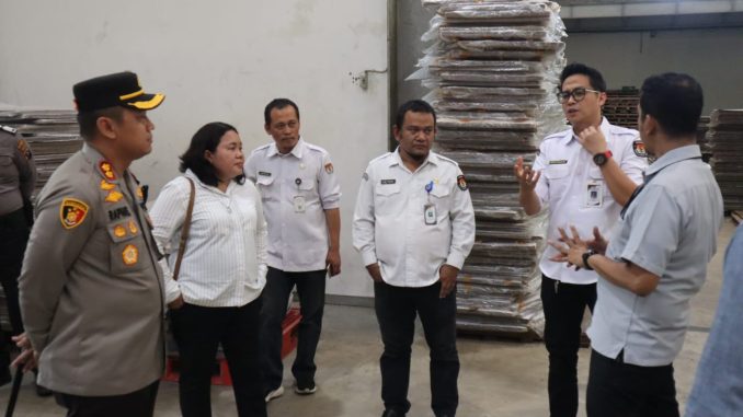 Kapolresta Deli Serdang AKBP Raphael Sandhy Cahya Priambodo SIK meninjau dan cek Gudang logistik KPU Deli Serdang di dua lokasi, yakni di Gudang Pos Kec. Tanjung Morawa dan di GOR Pemkab Deli Serdang yang juga sebagai tempat lipat sortir Logistik Pemilu 2024, Senin (06/11/2023).