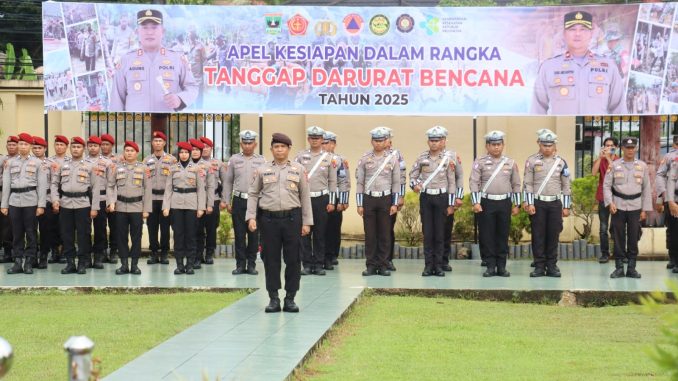 pasamanbarat.sumbar — Kepolisian Resor (Polres) Pasaman Barat, Sumatera Barat (Sumbar), menggelar Apel Kesiapan Dalam Rangka Tanggap Darurat Bencana tahun 2025 yang dilaksanakan di halaman Mako Polres setempat, Rabu (5/11/2025).