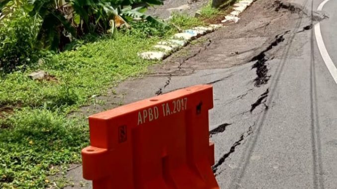 Dengan kondisi akses jalan yang rusak dan amblas tersebut di khawatirkan akan menimbulkan kecelakaan lalulintas pada titik akses jalan yang amblas dan rusak, posisi jalan menikung dan menurun dari arah selatan.