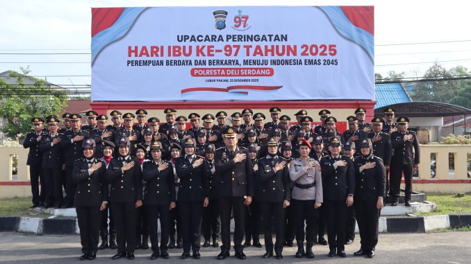 Polresta Deli Serdang menggelar upacara peringatan Hari Ibu ke-97 Tahun 2025 di Lapangan Apel Mapolresta Deli Serdang ,Senin (22/12/2025).