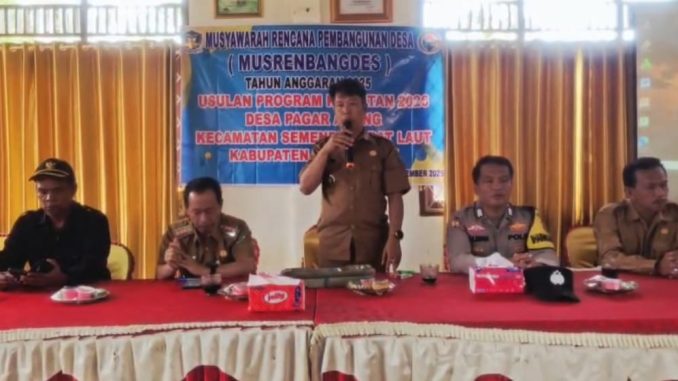 ketua BPD..memaparkan agenda utama musyawarah yakni pembentukan tim penyusun dan pembahasan prioritas program pembangunan desa.