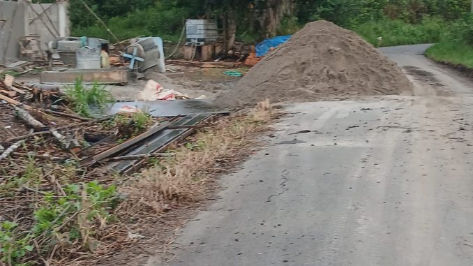 Tumpukan matrial di jalan umum dapat menjadi ancaman serius bagi pengguna jalan baik roda dua maupun roda empat, keberadaan matrial tersebut tidak hanya mempersempit lalu lintas tetapi meningkatkan resiko kecelakaan berujung pada korban jiwa