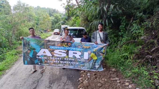 Muara Enim – selidikkasus.com Personel Polsek Semendo, bawah naungan Polres Muara Enim, melaksanakan kegiatan tambal jalan propinsi sebagai bagian dari Gerakan Indonesia ASRI (Aman, Sehat, Resik, Indah).