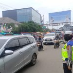 Petugas Polantas turun langsung ke lapangan untuk mengatur kendaraan, membantu penyeberangan masyarakat serta memastikan arus lalu lintas tetap berjalan lancar dan tertib.