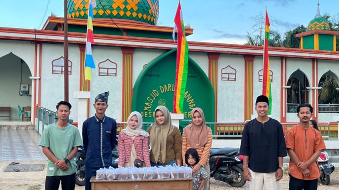 Pembagian paket takjil gratis bagi masyarakat dipimpin langsung founder SYD Law office Suryadi SH MH,dan turut membersamai pemuda/i desa balam merah di depan masjid Darul jannah pada Senin (16/3).